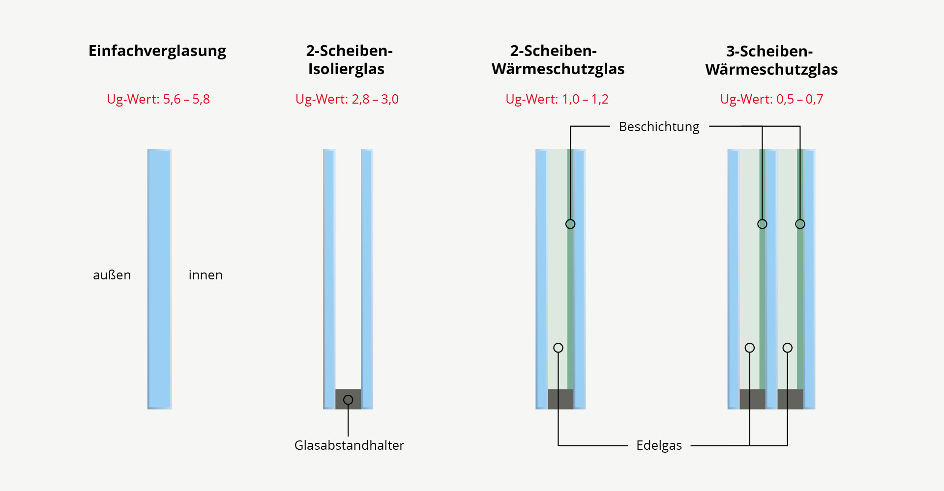 Der Ug-Wert gibt als messbarer Wärmedurchgangskoeffizient Auskunft über den Wärmeschutz eines Glases – je kleiner er ist, desto besser dämmt das Glas.